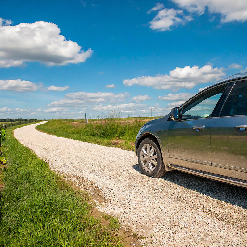 Pour une allée carrossable, la taille des graviers doit être plus importante, supérieure à 15 mm, afin d’offrir le niveau de résistance attendue pour le passage de voiture à faible vitesse. Évitez toutefois des granulométries trop importantes, de plus de 20mm, rendant impraticable la circulation de votre voiture. Les gravillons roulés, ne présentant pas d’arêtes, ne sont pas recommandés car ils peuvent entrainer un patinage des roues notamment si l’épaisseur est trop importante.